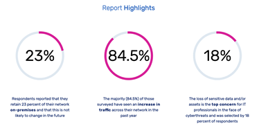 This global research was conducted to understand the challenges, concerns, and perspectives of large enterprise organizations as they continue adapting their IT strategy and infrastructure to the rigors and risks of digital transformation and the hybrid work environment. It explores the investments organizations have already made to bolster infrastructure and security, and those they are planning to make. It also examines expectations for remote and hybrid work as we enter a new phase of living with COVID-19.